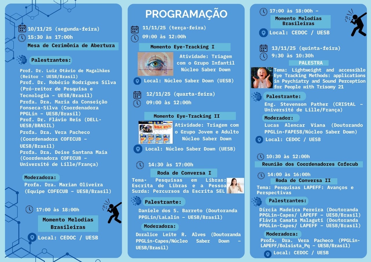O evento é uma realização do Núcleo Saber Down em parceria com a Université de Lille, França. Outras informações podem ser encontradas pelo telefone (77) 3424-8773 ou pelo e-mail nucleosaberdown@uesb.edu.br.